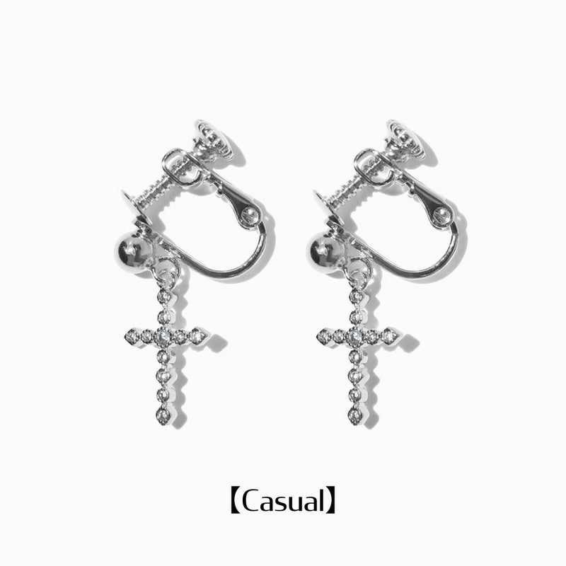 一瞬の輝きを捉えて、耳元で揺れる洗練 Cross Earrings【Casual】(Silver)