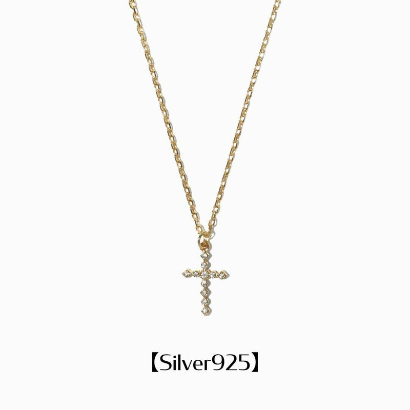 光を取り込み放つ、シンプルで上品な輝き Radiant Cross Necklace【Silver925】 (Gold)