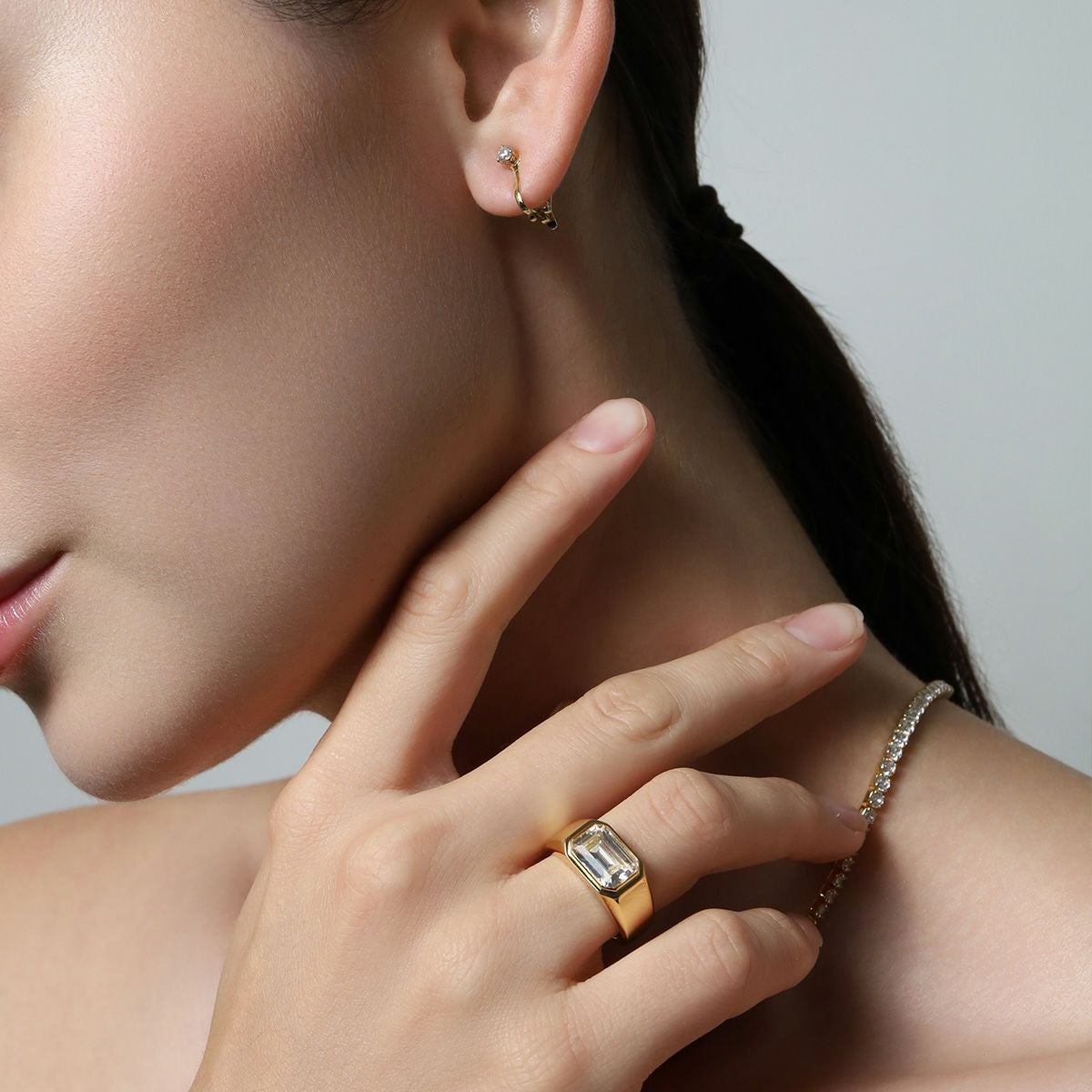 Square College Ring 【Silver925】 (Gold)