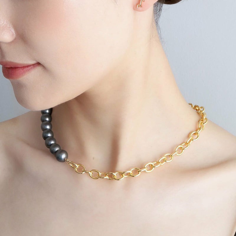 重厚感のあるチェーンとポイントとなるパールで表現したネックレス。