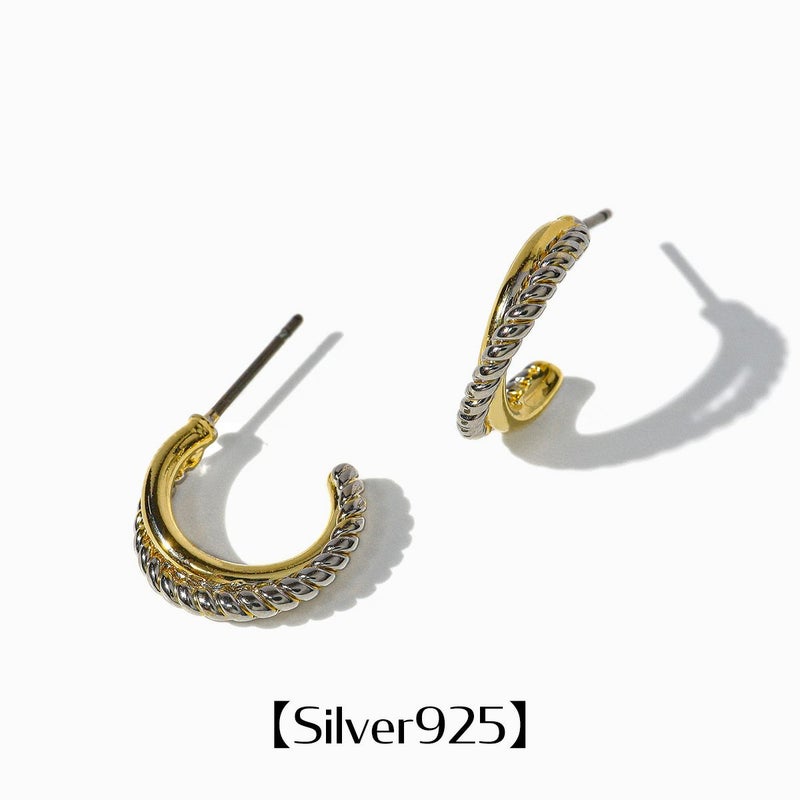 耳元に洗練さを添えるツイストラインの輝き Mix Hoop Pierce【Silver925】(Gold)