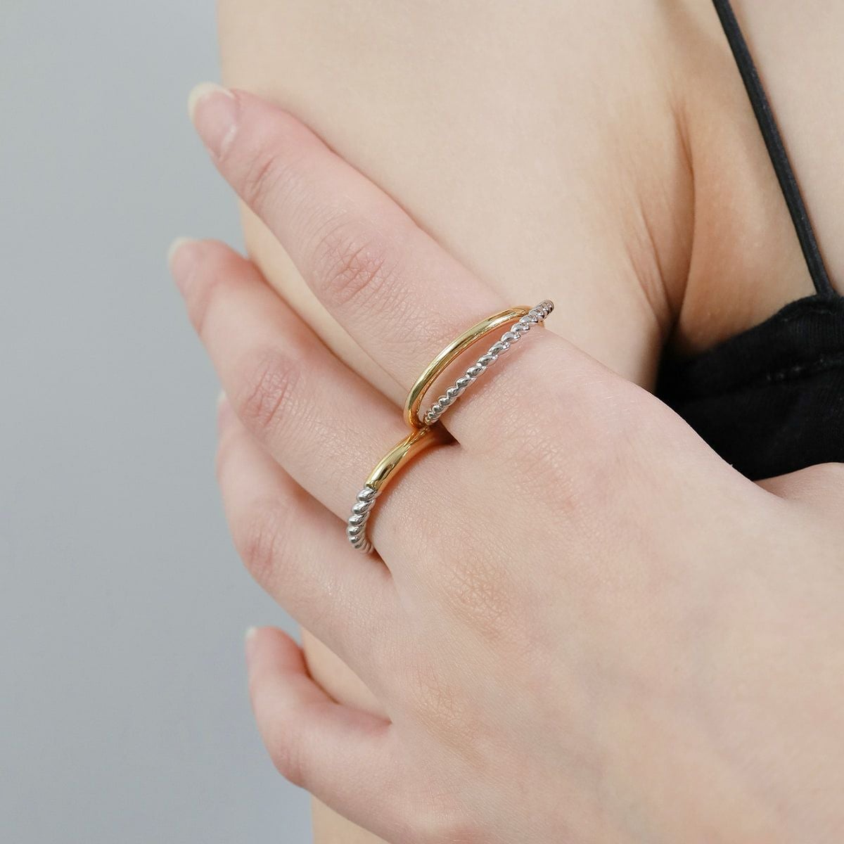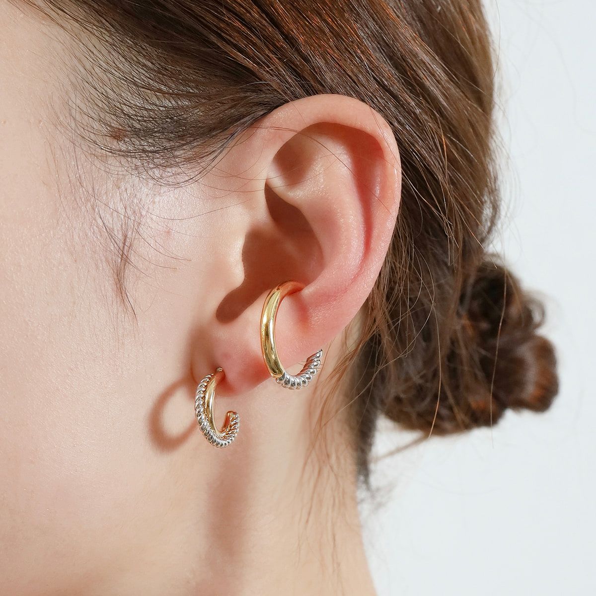 他の画像を見る 2色の融合、表情豊かな2Wayデザイン Mix Hoop Ear Cuff Ring【Silver925】(Pink Gold) ¥ 12,100 税込 カートに入れる お気に入りに登録する