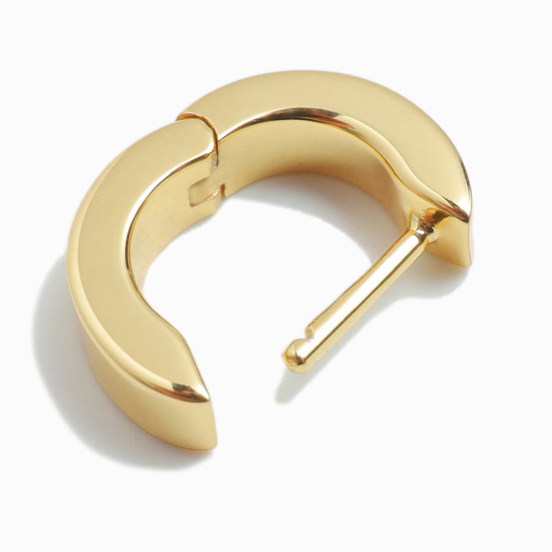 小ぶりで取り入れやすいサイズ感でありながら、地金のキラッとした輝きが上品な存在感を演出。動くたびに光を反射し、顔周りをさりげなく華やかに彩ります。
